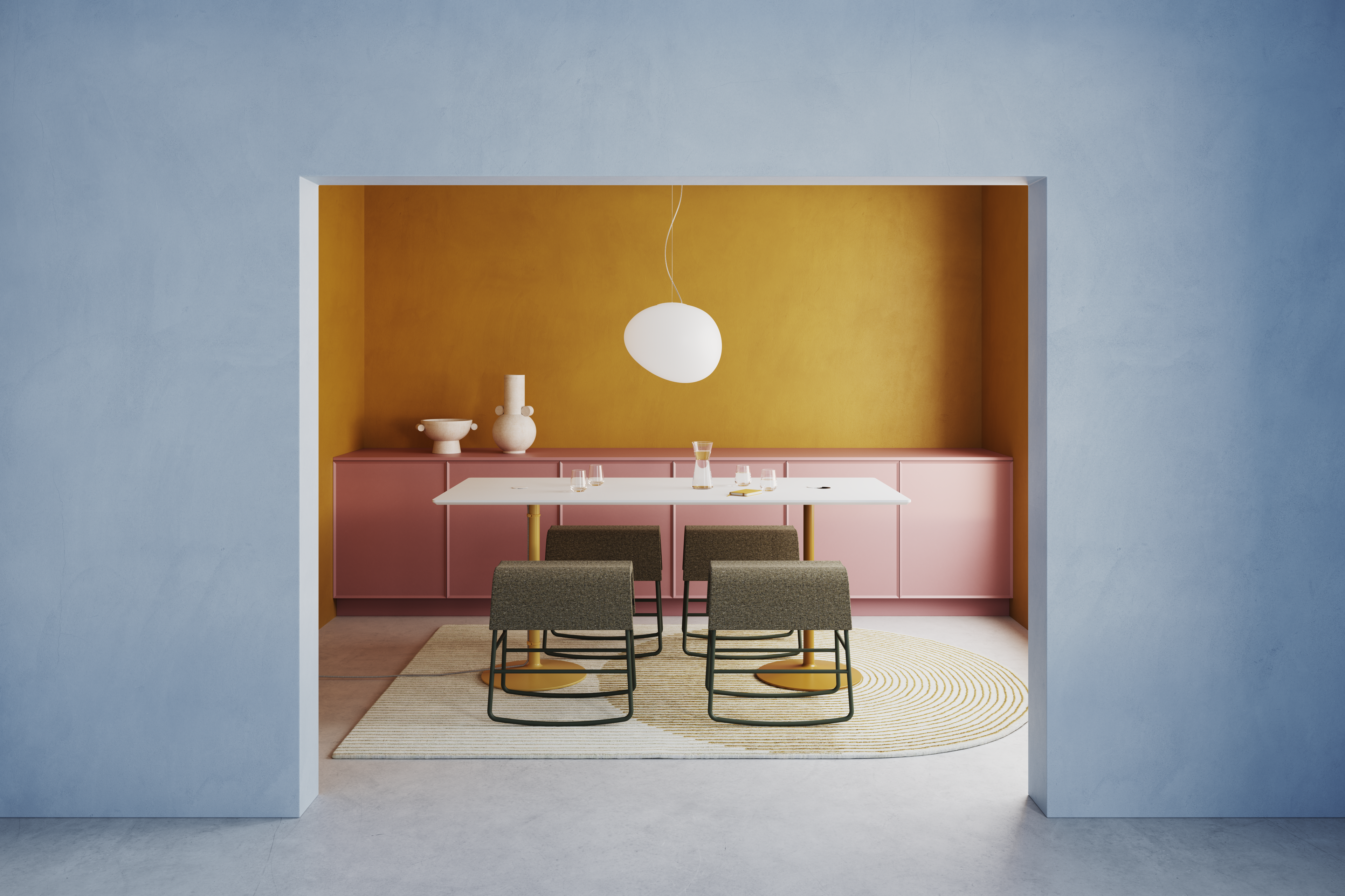 I detta projekt har vi tagit fram tre rum för Materia, där färg och form står i centrum. Varje rum har ett tydligt uttryck – med rena linjer, noggrant valda kulörer och genomtänkt möblering. Visualiseringarna visar hur Materias produkter kan ta plats i varierade sammanhang, utan att kompromissa med varken enkelhet eller karaktär.